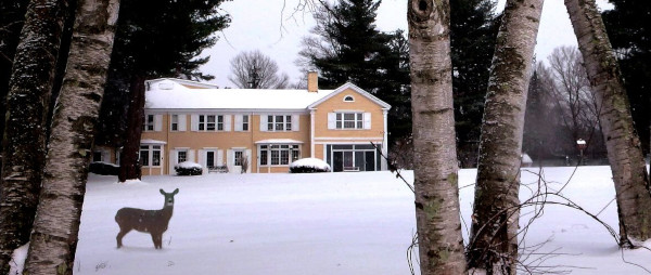 An English-Style country house originally built in the early 1800’s, Devonfield Inn overlooks a meadow shaded by birch trees against a backdrop of rolling hills. Indoor and outdoor holiday decorations set the tone for the festive period at the B&B. Popular activities are cross-country skiing on Devonfield’s extensive grounds as well as a program for winter horse riding with HorseWorks Farm. Thanksgiving dinner is offered for guests.