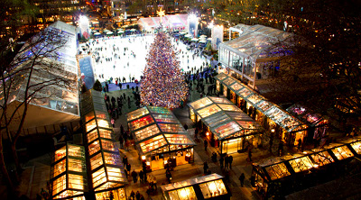 After returning from visiting the Christmas markets in five European cities, I was eager to check out the ones here. Of them, my favorite is the Winter Village at Bryant Park. It may not be as large as the one by Columbus Circle or the one at Union Square but it gets my vote for its variety of attractions. When you’re tired of shopping, there are many eating outlets, a convenient restroom, and there’s an ice skating rink that’s FREE. (Take that, Rockefeller Center!).
