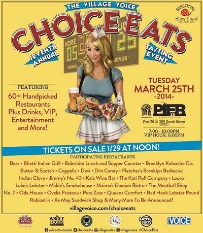New this year, “Choice Eats” will be accepting volunteers to assist The Village Voice team on-site at the event. In addition, to free entry to “Choice Eats,” this is a pretty cool way to get a free general admission ticket to The Village Voice’s Third annual “Choice Streets” Food Truck Tasting Event to be held later this year in May. To apply, you must be 21 years or older and fill out this application, http://bit.ly/CEvolunteer.