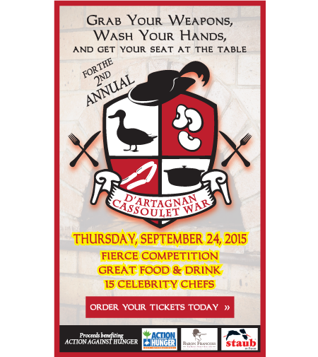Cassoulet EventOn September 24, fifteen chefs battle for cassoulet supremacy at The Standard Biergarten. Enjoy the festivities and the cassoulet experience while voting for your favorite cassoulet. Proceeds benefit Action Against Hunger. A panel of judges including Chef Sara Moulton (Food Network’s “Sara’s Secrets), Chef Andre Daguin (Hotel de France), Chef Jean-Pierre Xiradakis (La Tupina), Francis Staub (Founder of Staub Cookware), and Jean-Michel Cazes (French winemaker) will choose the Most Authentic and Most Daring cassoulet champion.The Standard, 848 Washington St. (at Little West 12th St.), Manhattan