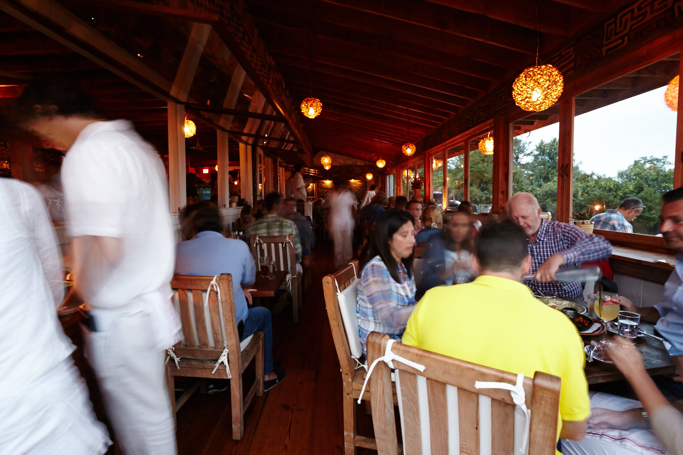 Crow’s NestCrow’s Nest, Montauk – Another restaurant with a no-reservations policy, Crow’s Nest actually makes your waiting time a desirable experience. You can sit by the beachside bar and watch the sunset while eating oysters on the half, washed down with a specialty cocktail like a watermelon cooler or a gin concoction aptly named the Summer Rental. If it’s chilly, there’s a fire pit to cozy around. The dining room has lovely views of the harbor and a small, handwritten menu of dishes ranging from pasta with sea urchin and chilis, to locally caught striped bass and Montauk fluke crudo. The busy restaurant manages to keep a very cheerful tone with a rustic, yet polished feel.  To avoid the wait, arrive by 7:15, especially on a weekend when everyone seems to want to be in Montauk. http://crowsnestmtk.com