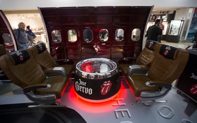 At this replica plane, you can try a sample of Jose Cuervo Especial between 2:30pm and 8pm, and sit around a bar that looks remarkably like the one on the Stones’ plane. There are also exhibits, Guitar Hero, and the leather seats that the Stones and their music crew sat in on their memorable 1972 tour. The seats also have the immediately recognizable lips logo. You can tune out the noise of the airport, as well, as Stones songs are playing non-stop. You might actually be happy that you have a layover. #CuervoSunriseTour