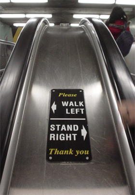 On a final note, pick up the pace.  Manhattan is a busy city with busy people frequenting its sidewalks and spaces.  Walking is up-tempo here and strolling three abreast is frowned upon; we need room to pass.  The same holds true on escalators; if you feel like taking a leisurely ride to your destination, stay to the right so others can climb ahead.