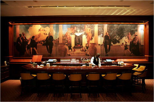 King Cole Bar: Once a bastion of cigar-smoking power brokers or account types like Ken Cosgrove and Pete Campbell, the newly reopened King Cole Bar in the elegant St. Regis Hotel is the birthplace of the Bloody Mary, known here as the Red Snapper. This classic bar also is known for its famous and recently refurbished mural, “Old King Cole” by Maxfield Parrish. St. Regis Hotel, 2 E. 55th St., 212-753-4500. www.kingcolebar.com
