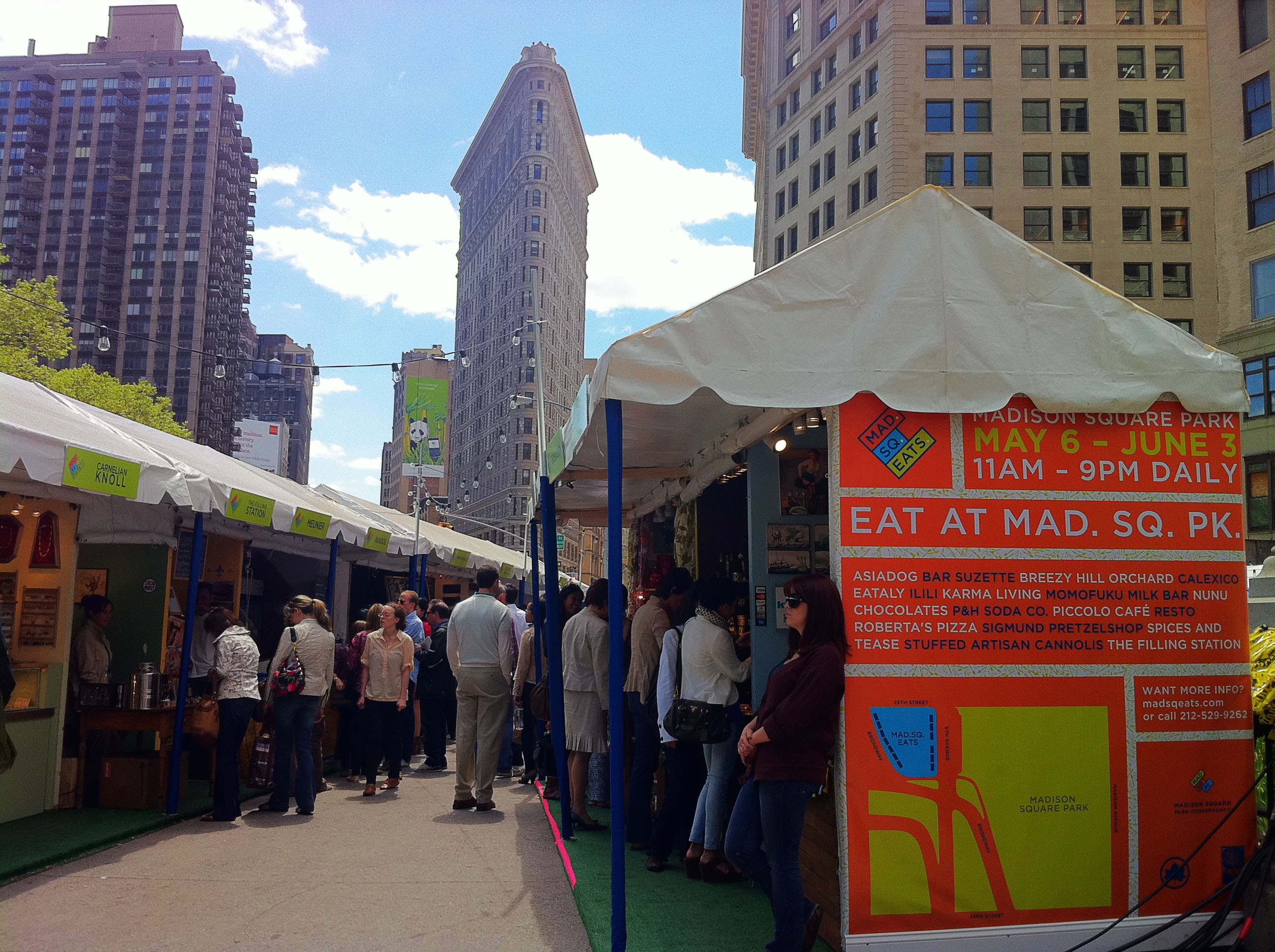 Mad. Sq. Eats is open daily from 11am-9pm until May 31, at Worth Square (located directly adjacent to Madison Square Park on the intersection of Broadway, 5th Ave. and 25th St). Here’s the full list of vendors: