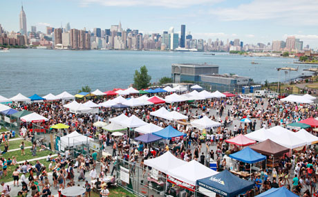100 to 115 food truck vendors from NYC and around the world are gathering every Saturday and Sunday this summer for Smorgasburg, a Brooklyn Flea Food Market (http://www.smorgasburg.com/). Both the locations (Williamsburg and DUMBO) andthe cuisine ensure a trendy experience.