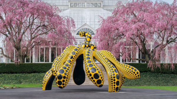 More than 200 cherry trees are scattered throughout the expansive New York Botanical Garden beginning with the entry walkway leading to the first of many colorful sculptures by Japanese artist Yayoi Kusama, “I Want to Fly to the Universe.” The mix of Japanese art and Japanese cherries creates a transportive effect as you roam the grounds.